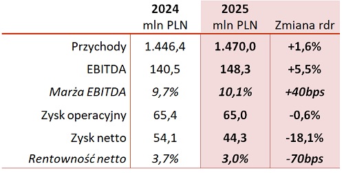 Grupa Sanok Rubber Company (GPW: SNK) w 2025 roku zwiększyła przychody do blisko 1,5 mld zł, zwiększając rentowność na poziomie EBITDA i osiągając ponad 148 mln zł zysku na tym poziomie. Przełożyło się to na 65 mln zł zysku operacyjnego oraz ponad 44 mln zł zysku netto. W samym czwartym kwartale Grupa Sanok Rubber przekroczyła 357 mln zł przychodów (+7% rdr) oraz wypracowała 36 mln zł wyniku EBITDA (+26% rdr), ponad 14 mln zł zysku operacyjnego (+74% rdr) i niecałe 13 mln zł zysku netto (+146% rdr).